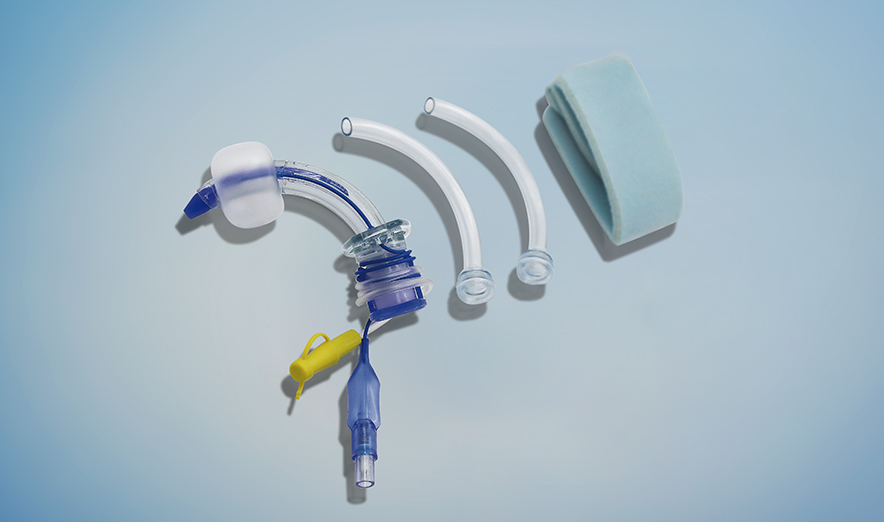 醫用PVC,主要由外插管、內插管、吸痰管、吸痰管接頭、插管接頭、固定翼、插管芯、套囊、充氣管、指示球囊、單向閥、病人端組成